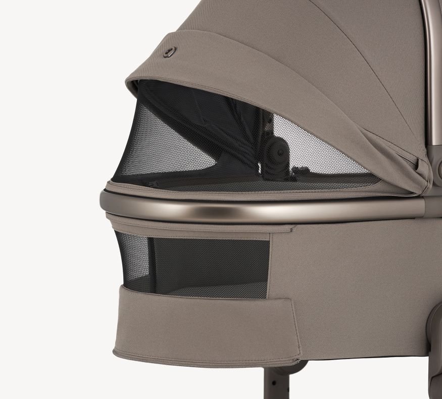 Katlanabilir beşiğin genişletilmiş iç hacmi bebeğin özgürce hareket etmesine olanak tanır; kullanışlı oturma ünitesi ise şasiyle birlikte kolayca dönüşür ve kompakt şekilde katlanır.