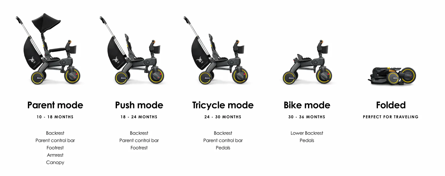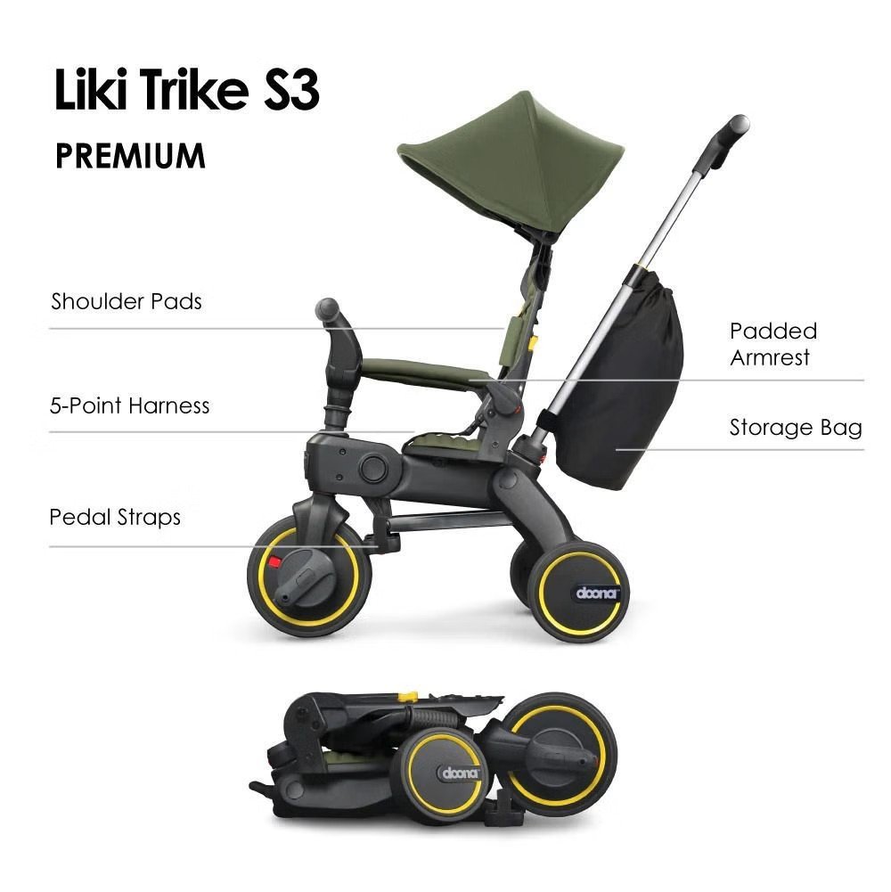 Doona™ Liki Trike S3, tek bir tıklamayla saniyeler içinde katlanıp açılan kompakt ve şık bir üç tekerlekli bisiklettir. Patentli katlama sistemi sayesinde Liki S3, seyahat için mükemmeldir; arabanızın bagajına veya hatta bir uçağın üst bölmesine sığar. Ayarlanabilir sırt dayanağı, yumuşak sürüşlü tekerlekler ve UPF 50+ güneşlik, çocuğunuzun her zaman konforunu sağlar.