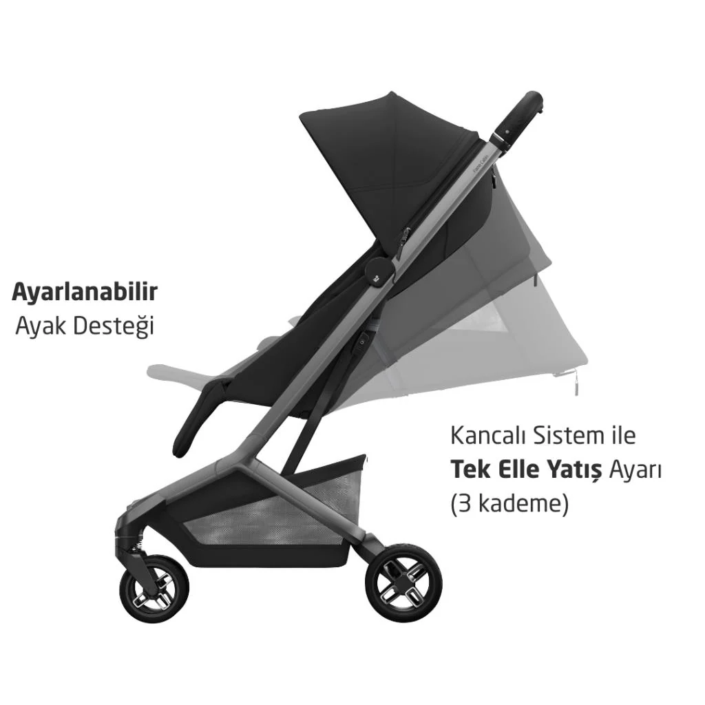 Ayak dayama yeri birkaç pozisyona ayarlanabilir, böylece çocuğunuz uyurken bacaklarını rahatça uzatabilir veya dünyayı izlerken aktif bir oturma pozisyonu alabilir. Konfor açısından büyük fark yaratan küçük bir detay.