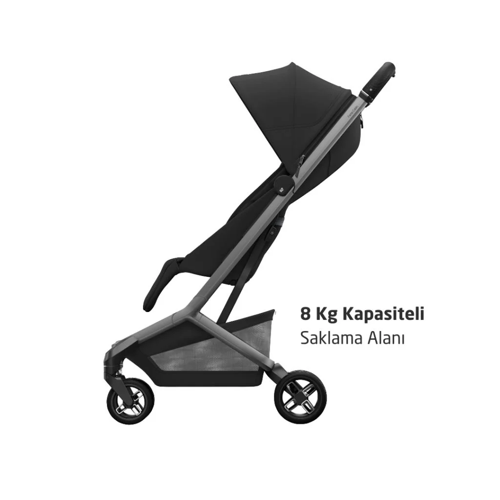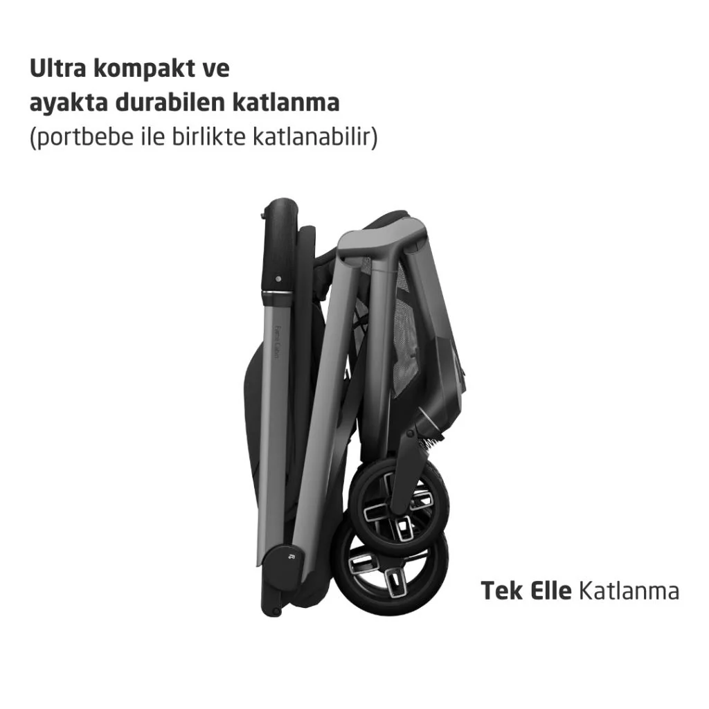 - Hafif ve kompakt – uçuşlar için ideal bir bebek arabası;