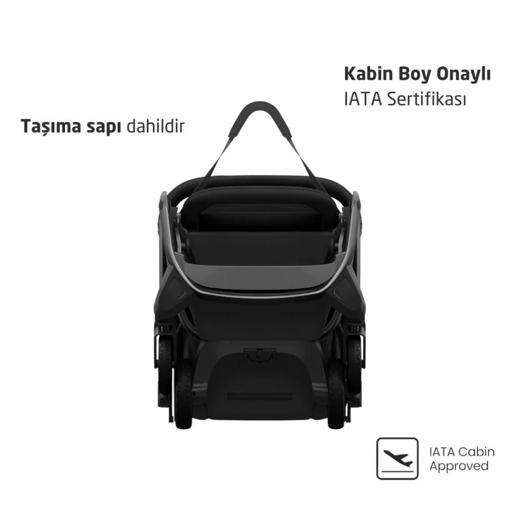 Bebek arabası, IATA gereksinimlerine uygun olarak tasarlanmıştır; bu da uçakların kargo bölümüne el bagajı olarak kolayca sığabileceği anlamına gelir. Sık sık seyahat eden ve her zaman el altında bir bebek arabası bulundurmak isteyen aileler için mükemmel bir çözümdür – bagaj bandında beklemek zorunda kalmadan.